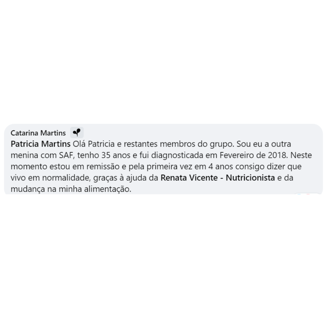 Assim sendo, a minha missão é levar este conhecimento a outras mulheres, para que utilizem a alimentação como aliada e como complemento ao tratamento convencional!